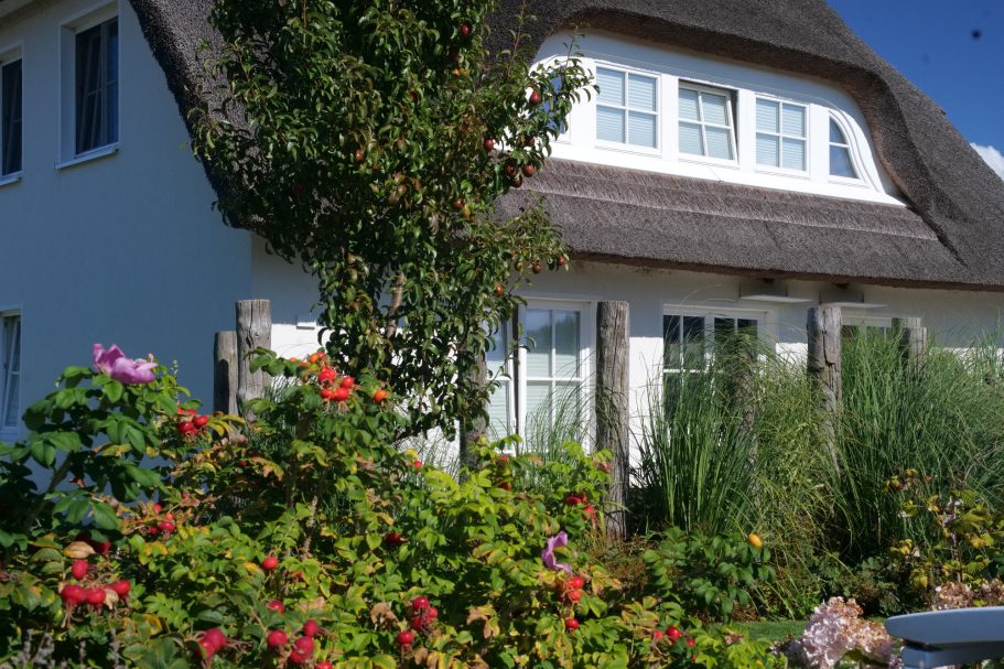 Modernes, reetgedecktes Haus (BJ. 2020) in malerischer Lage zwischen Boddenlandschaft und Großstadt nördlich von Stralsund. Die Unterkunft bietet Platz für bis zu 8 Personen und ist ausgestattet mit einer Sauna, Kaminofen, einer Waschmaschine sowie kostenfreiem WLAN über einen Glasfaseranschluss. Die großzügige, voll ausgestattete Küche ermöglicht komfortables Kochen und Zusammenkunft. Der weitläufige Garten verfügt über eine großzügige Terrasse, ideal für entspannte Stunden im Freien. Des Weiteren steht eine Wallbox für E-Fahrzeuge zur Verfügung, und es sind drei PKW-Stellplätze inkludiert. Diese Unterkunft eignet sich hervorragend für Familien- und Gruppenreisen und ist dank des fußläufig erreichbaren, flachen Badestrandes auch für Kleinkinder bestens geeignet.