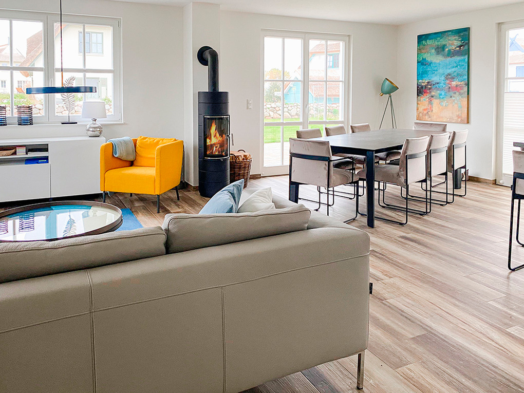 Die Einrichtung unseres Hauses ist auf die Zusammenkunft von Gruppen und Familien bis zu 8 Personen ausgerichtet. Kleinkinder (bis 6 Jahre) sind frei und haben ein klappbares Kinderbett sowie einen Hochstuhl für den Esstisch. Hier können Sie gemeinsam kochen, am Kaminofen sitzen, die Sauna nutzen, gemeinsam am großen Esstisch spielen, Pläne schmieden, und, und, .....